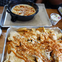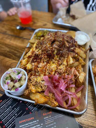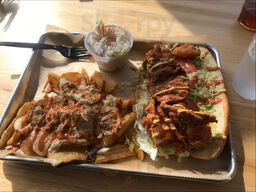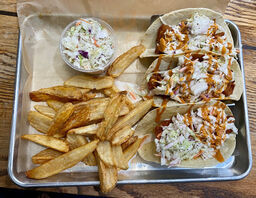 Food is outstanding! Shrimp tacos are delicious and feta fries have the perfect amount of sauce sland feta on them. Coleslaw is creamy and cold!