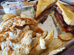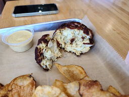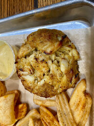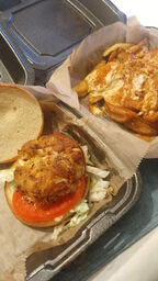 We had heard good reviews about this place and decided to check it out. It's a casual seafood and comfort food restaurant. Order at the counter and pay, and the food is brought out to you. They have a lot of crab inspired dishes. I got the Super Grouper sandwich, which includes lump crabmeat. Robin