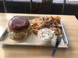 This place is amazing! The girls behind the counter are super sweet and the entire staff is friendly and attentive. Food is a unique combination of BBQ and seafood served in a "back porch" kinda atmosphere, and there isn't a bad choice on the menu. Mahi tacos are my favorite and you gotta try the fr