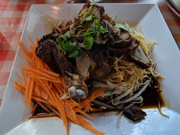 Had some Tom Yum soup, ginger tea, and their appetizer sampler. Everything was good. Will probably eat here again next time I'm in town.