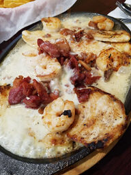 Food portions are good size. Food and drink menu is good too. Friendly, courteous and attentive staff. Staff is accommodating as well. Love their homemade spicy salsa which you have to ask for with chips and salsa. If you like spicy ask for roasted whole jalapeño and extra crispy fried onions to hav