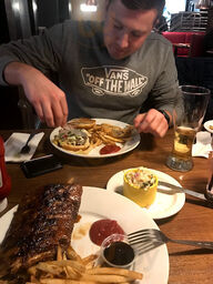 So decided to go here with my girlfriend for our 4 year anniversary and this place was 💣, but honestly for our first time ever being here it was so good. But on to the food we started our meal with loaded potato skins which were flavorful and tasted so good, and then our entrées came in I had the tr