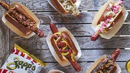 Wide variety of meats for your dog (veggie dog too) with lots of toppings too. Best gourmet dogs I ever had. The buns are top quality too.