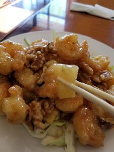 Food was pretty good and the prices are good. No air conditioning, but it wasn’t terribly hot. Had the Hunan chicken and Kung Pao chicken. Won ton and hot and sour soups were good too.