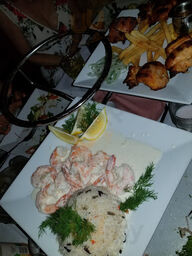 Food was delicious! Especially we liked salads and salmon in a white sauce.