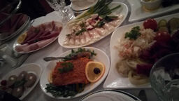 Food was delicious! Especially we liked salads and salmon in a white sauce.