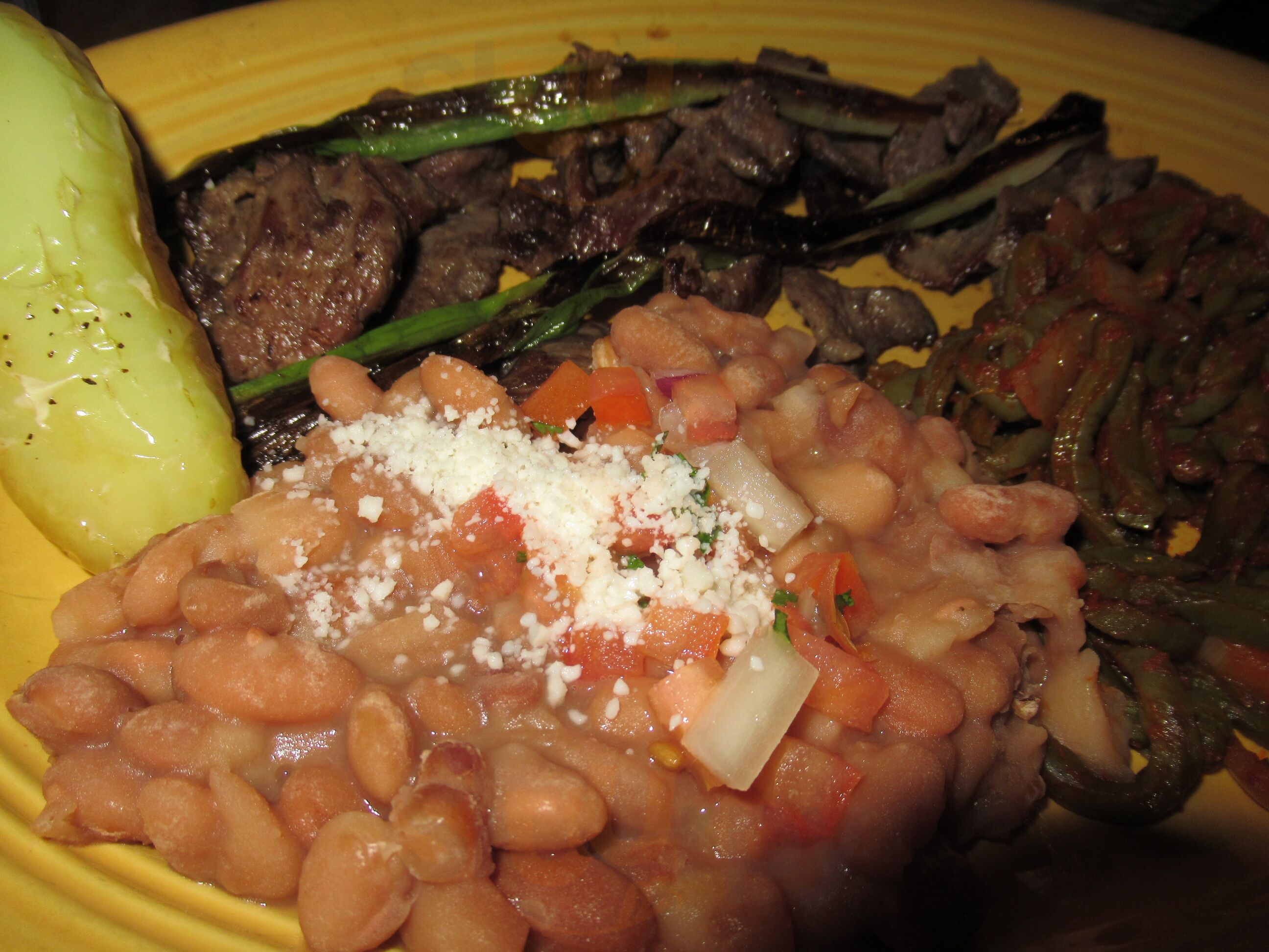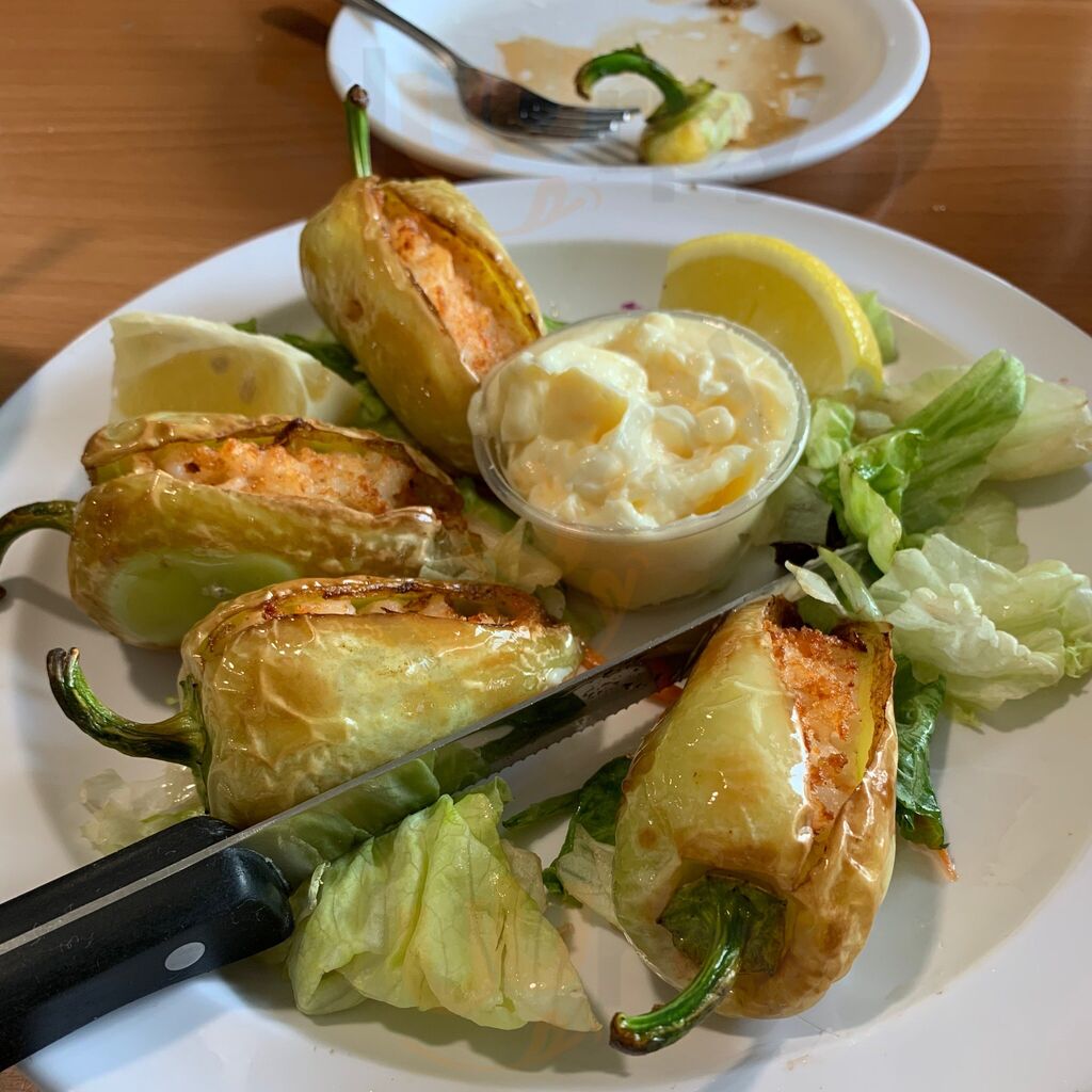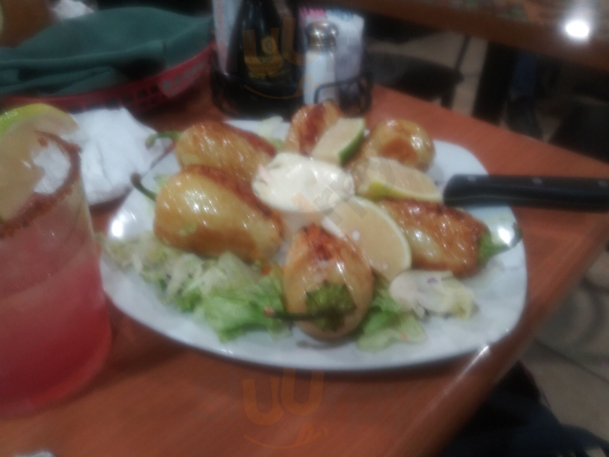Really good food. Serves chips and salsa. We had one of their most famous appetizers called “yellow peppers” stuffed with shrimp. It was delicious, and had a kick to it spice wise. Service was just as good.
