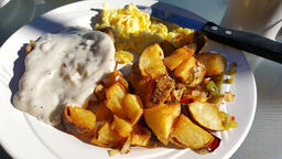 Food was good, the lady who served us was super nice. I liked their coffee. I ordered the French toast. 3 large half slices and eggs were good. The only down was the bacon I got was way under cooked.