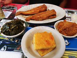 Authentic southern food at its finest. The collards are a little sweet, so it was unexpected, but still very good. This seems to be a local hot spot. Don't sleep on the hush puppies. They're delicious!