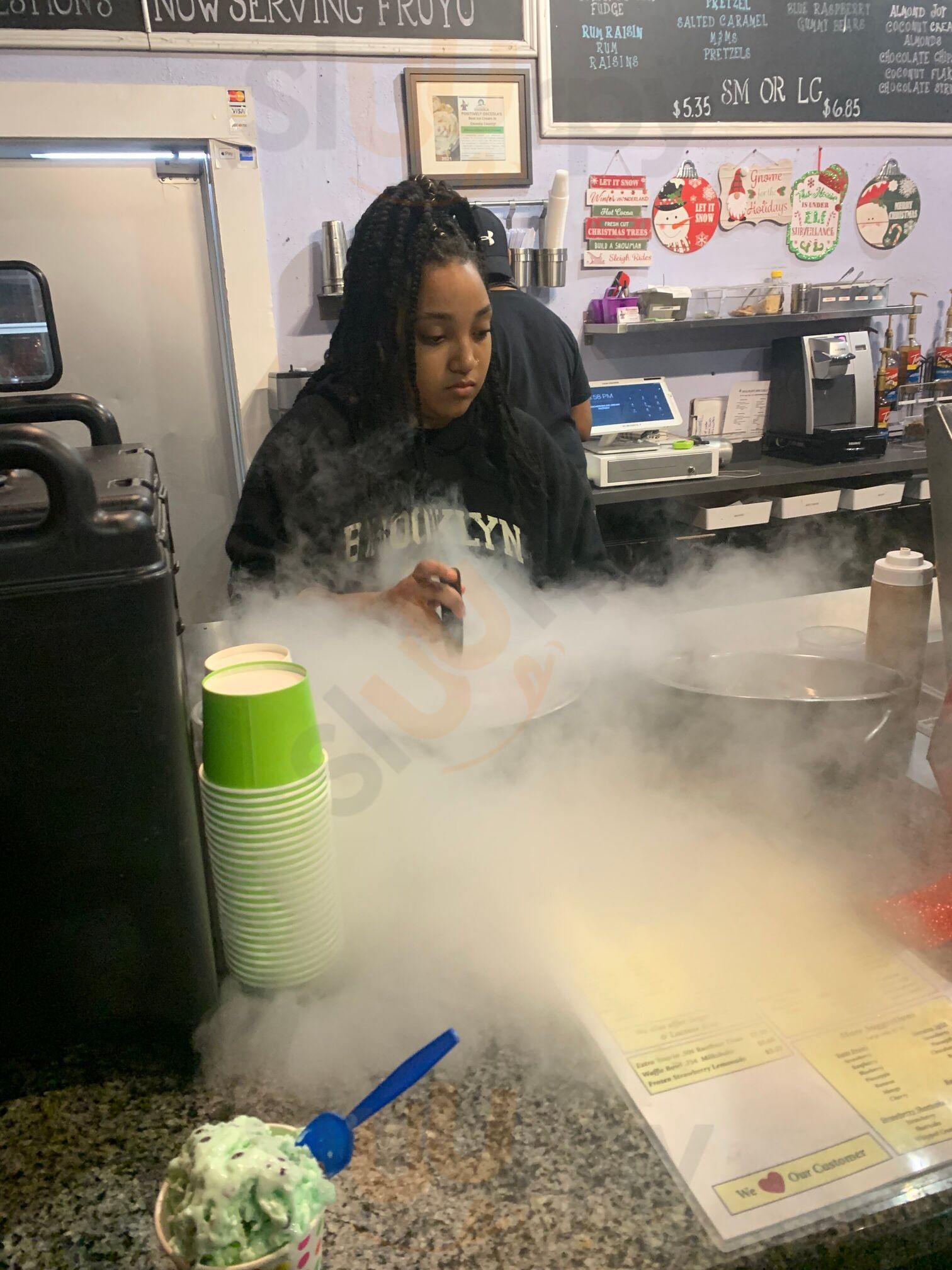 One of the best spots we found while in Kissimmee Fl!!! Just watching the process in front of you was cool. The ice cream is delicious!! The crew there are great!! A must if you’re down in Downtown Kissimmee!! I had the almond joy ice cream made with coconut cream, chocolate chips, almonds and cocon