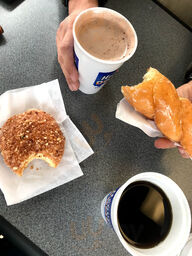 Stopped in to grab a box of donuts the other day! The staff is extremely friendly and were so patient with my girls who were taking a while to choose exactly what they wanted. There were lots of choices even at 3 in the afternoon! When we got home the chocolate eclair donuts were just a tiny bit sta