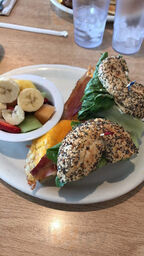 My daughter and I had a wonderful breakfast this morning here. The food is so flavorful, I had the Salmon Sramble ( lots of salmon) and instead of onions they added spinach. The other dish was Green Scrambled. We also ordered one Lemon Zest Pancake, it was amazing! Drinks are amazing too. Highly re
