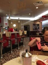 Inside Opry Mills Mall Johnny Rockets is a classic diner type restaurant. Burgers, fries and other sides as well as ice cream shakes. It’s what you expect and nothing overly spectacular but food and service is good and they work hard to keep the place clean.