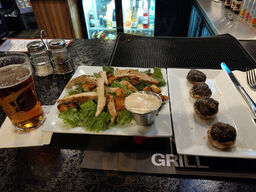 Good food, nice selection of choices and nice bar. Had a veggie wrap with a side salad. The house dressing was creative and delicious! Nick the bartender, was friendly and attentive. Prices were reasonable too. Will definitely come back when in the area.