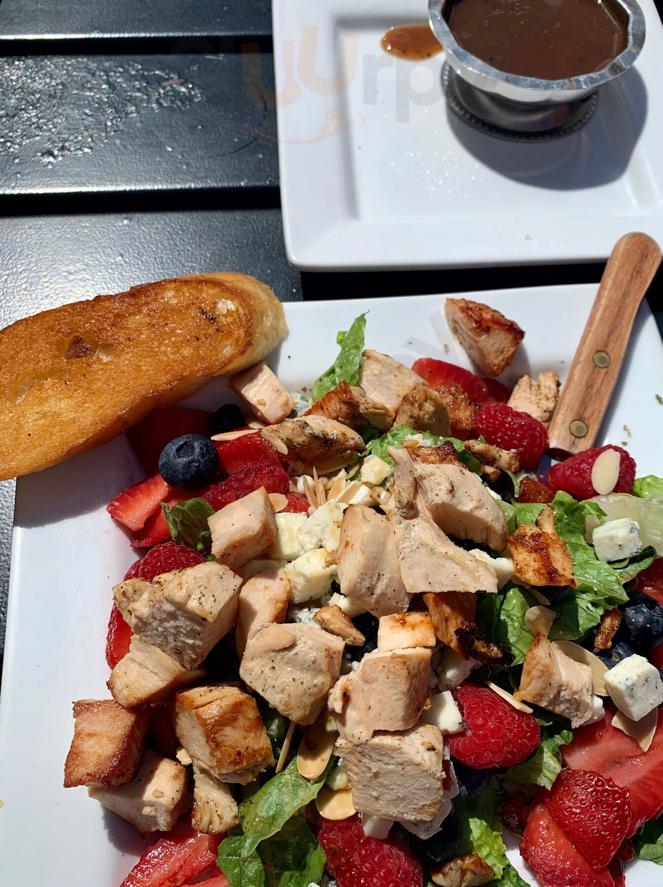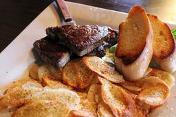 Food and drinks were good! We enjoyed the garlic bread with a mixture of cheese toppings. The grapefruit mule was refreshing! If you get an old fashioned make sure you ask for oranges and cherries and for it to be muddled as mine did not come like that. Open face tenderloin was also great and cooked