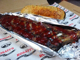 Unfriendly on phone when ordered. Unfriendly When picked up. Ready in 30 minutes. Ribs sauce was tasty. Rib meat dry and chewy. Frys old and cold. Cold slaw small amount and average taste. Over priced by 25%. I hear the pizza is good though.