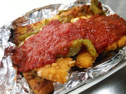 I picked up my deep dish pizza.on the internet menu on yelp large is $19.50. I had three toppings and it was $34. The price should be adjusted online to promote a better customer experience. The taste was great! Give packets of red crushed pepper and Parmesan cheese if you want to be a 5 star pizzer