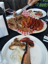 Must try if you love smoked bbq ribs, pulled pork or brisket. Moist, flavorful and smokey. The green beans and pinto beans were delicious. Must have their Berry cobbler. Great service with friendly staff.