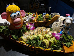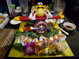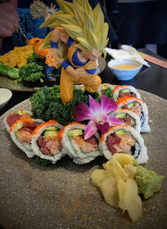 The sushi rolls were huge and delicious. We love anime so we came here for the atmosphere mainly but the food was definitely bomb and worth returning for. My daughter picked this place for her birthday and was so excited to just be here, but the birthday dessert blew her mind lol we weren't expectin