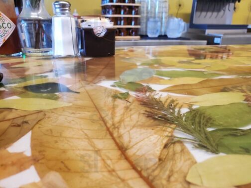 Small town diner vibe..loved it! Had the potatoes and eggs. Potatoes mixed with cheddar cheese, I added bacon, cilantro, green peppers, Pico and sour cream. It was absolutely fantastic! Staff friendly and attentive. Great place! Also loved the leaves overlaid acrylic countertops.