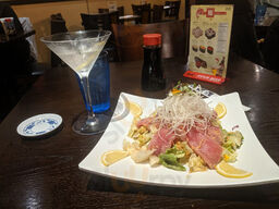 Amazing sashimi salad and grab special roll. with a big soporo beer... impossible to beat!