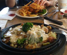 Breakfast was great. I had the senior omelette and hubby had eggs benedict! A little slow getting service but that's pretty understandable in today's world. Recommend this to Denny's. We are from Michigan and this is one of the best Denny's we've been to.