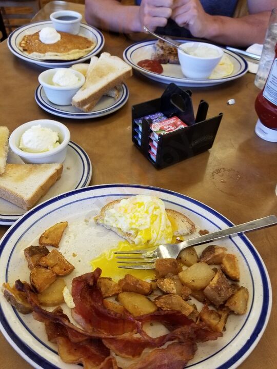 This place is one of our favs in town. Whether it is massive omelettes for breakfast or great chicken fried steak for lunch/dinner, the quality of the food cannot be beat. The staff is amazing and always greets us with smiles and asks where we have been. It has delicious food, friendly staff, and