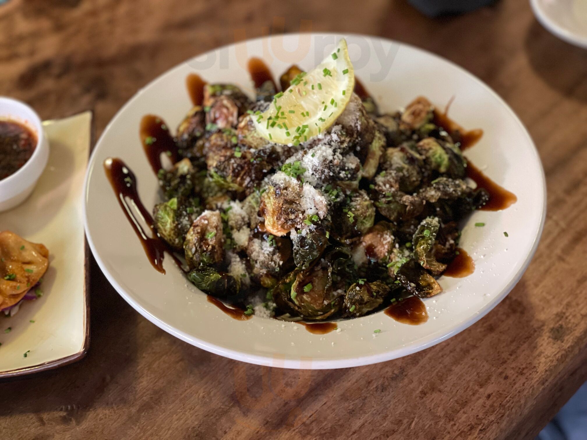 Took myself out on a solo date and got 2 oysters, fried Brussels and fig Gorgonzola flat bread with a side of balsamic to drizzle on the flat bread (I like my food saucey!) It was so good and I’m so full I only ate half of each and am excited to bring the left overs to my partner who will certainly