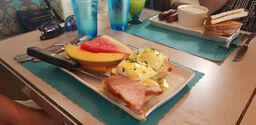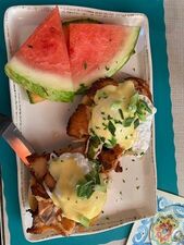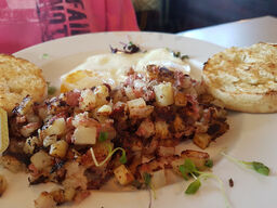 We had a very satisfying breakfast here. Whisky Bacon Benedict was outstanding. Thick sliced pork belly bacon cooked just so, napped with from-scratch hollandaise sauce in perfect proportion-not smothered-and a drizzle of whisky glaze. Nice touch. Companion enjoyed a nicely made western omelet order