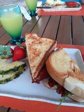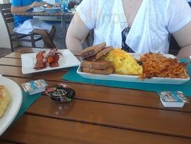 Anna Marie our server was very nice and friendly! Excellent service! First time there for breakfast. Food was excellent! I had the BLT breakfast sandwich. My sandwich had arugula, bacon, egg and fried green tomato on sourdough bread.Hubby had the Corned beef hash. Our friends had the Banana French t